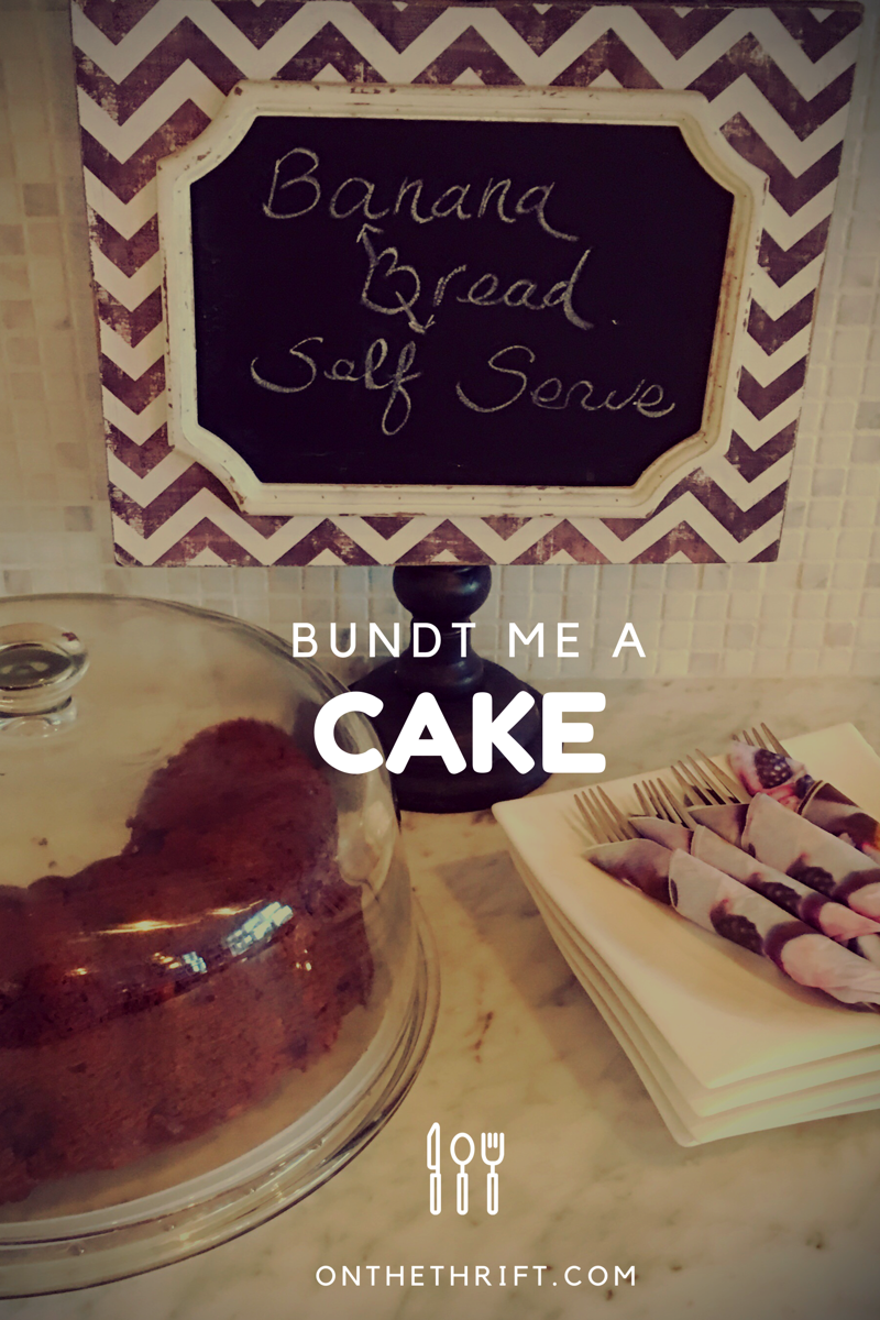 I love baked goods but I tend to buy all my goodies at a local bakery, except banana bread, I make a mean banana bread. I am actually famously known for it amongst my family and friends. But I was getting tired of the same old loafs I would make. I wanted to try something new so I thought I’d make my recipe in a bundt pan, the only problem is I needed one. I started shopping online and was surprised how much they cost. I wasn’t prepared to pay $25 for my project just in case it was a fail. So naturally I called my mom and said “next time you’re in the Goodwill can you try and find me a bundt pan and while you’re there, why not search for a cake dish with a lid”.